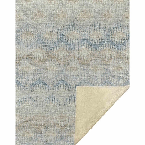 50" X 70" Linen And Gray Geometric Microfiber Plush Throw Blanket