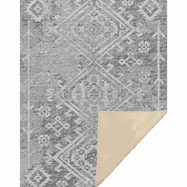 50" X 70" Pewter And Beige Southwestern Microfiber Plush Throw Blanket