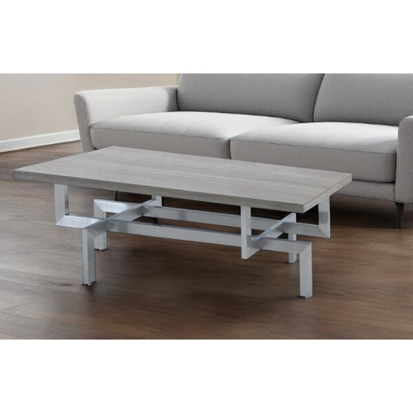 This good looking 51-inch gray and silver stainless steel coffee table is not only practical, but good looking and built to last. The base of this table is made from stainless steel in a silver color that creates a good looking visual contrast to the gray manufactured wood tabletop. This classic rectangular table will be a great accent in any room it has a fresh design that will definitely breathe some fresh air into your interior. This coffee table is the sturdy, reliable and stylish answer to your living room needs. 18-inch H x 51-inch W x 28-inch D