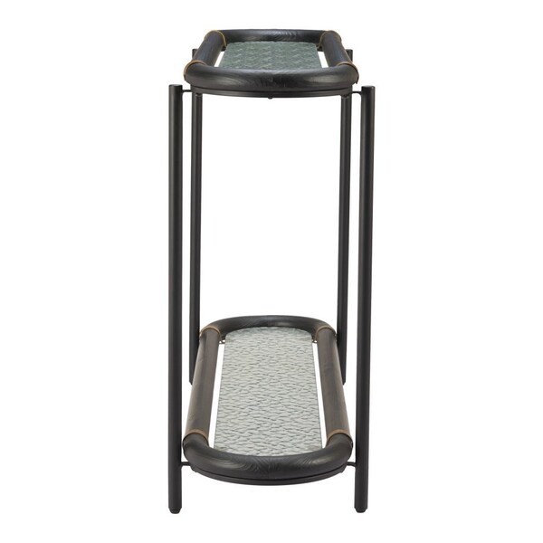 This 52-inch black and clear glass solid wood and steel oval console table with shelf is a high-quality, long-lasting piece of furniture that you can enjoy for years to come. The oval shape of this table will soften the flow of any room. Despite its luxurious appearance, the black and clear glass top is easy to maintain and clean, making it a practical option for those seeking both style and functionality. The black and clear hardwood table surface makes this unit stand out with its high quality material and construction. In addition to a great top, our console table has a steel four leg base, meaning that it is well-built and secure. Versatile in use, console tables can be used for a variety of purposes in a variety of rooms and settings. 32.10-inch h x 52.00-inch w x 15.00-inch d.