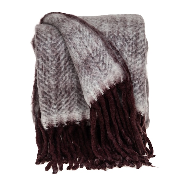 This 52-inch x 67-inch dark purple woven wool blend chevron throw blanket with fringe brings a classic, refined style to your space. Features a woven chevron design that offers sumptuous softness and texture that you'll cherish for years to come. Made from wool blend this blanket will make a great addition to any room it's added to. Layering your furnishings with a decorative throw has the ability to awaken a tired living room or elevate the design of your bedroom simply by providing elements of color and texture that weren't there before. Perfect for your favorite chair, bed or lounging on the couch, this blanket helps bring a warm and fashionable flair to your space. 52-inch H x 67-inch W x 0.5-inch D