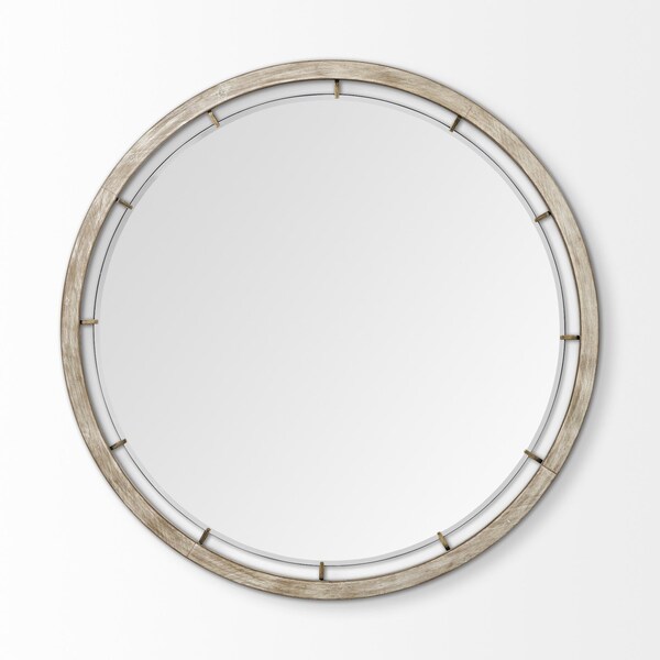 The carefully crafted 54-inch brown round wood and metal framed accent mirror is what you need to add finishing touch to your decor. Framed with manufactured wood and metal, this mirror will bring practical application and fashionable design to your space, adding some rustic flair to your decor. Features quality craftsmanship in every facet that ensures durability and long-lasting wear. Produced with premium quality glass for a beautiful reflection, this mirror will provide an exceptional visual experience. 53.93-inch h x 53.93-inch w x 1.57-inch d.