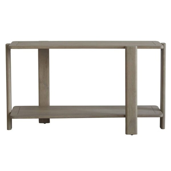 Don't settle for a boring entryway, upgrade your home with our 54-inch white solid wood console table with shelf today. This rectangular table has clean lines and plenty of surface area. This unit has a white genuuine hardwood tabletop. The four leg of this unit is crafted with solid wood, leaving you with a console table that is of the finest quality and materials. Versatile in use, console tables can be used for a variety of purposes in a variety of rooms and settings. 30.00-inch h x 54.00-inch w x 19.50-inch d.