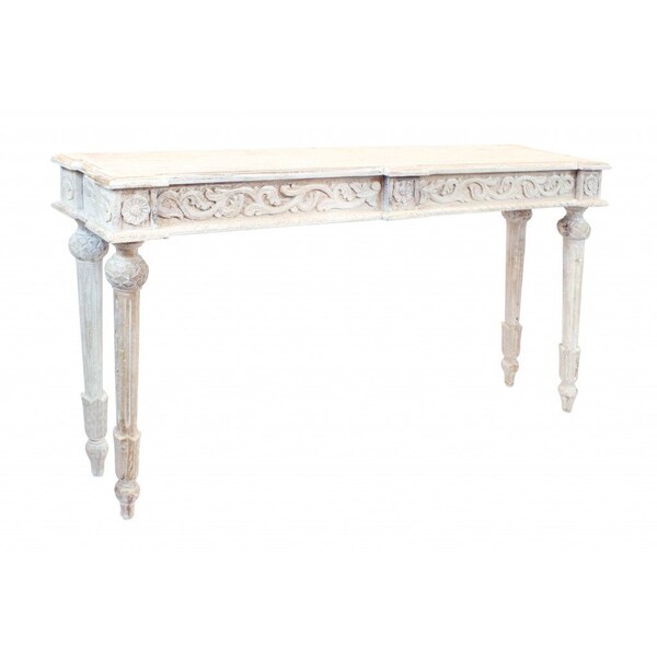 This 54-inch white solid wood distressed console table is a high-quality, long-lasting piece of furniture that you can enjoy for years to come. This rectangular table is ideal for up against the wall, can free stand in a room, or sit behind the sofa perfectly. This unit has a white genuuine hardwood tabletop. The four leg base is made of solid wood, the most strong and durable option available. Ideal for living rooms, bedrooms, home offices, and lounge areas, this console table is not only good looking but multi-functional and practical addition to your space. 30-inch H x 54-inch W x 12-inch D