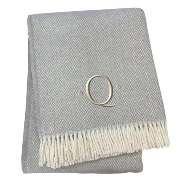 This 55-inch x 70-inch gray and white herringbone cotton blend q initial throw blanket with tassels and embroidery is a stylish addition to any sofa. Features a woven herringbone design that offers sumptuous softness and texture that you'll cherish for years to come. Made from cotton blend this blanket will make a great addition to any room it's added to. Layering your furnishings with a decorative throw has the ability to awaken a tired living room or elevate the design of your bedroom simply by providing elements of color and texture that weren't there before. Perfect for your favorite chair, bed or lounging on the couch, this blanket helps bring a warm and fashionable flair to your space. 70.00-inch h x 55.00-inch w x 0.50-inch d.