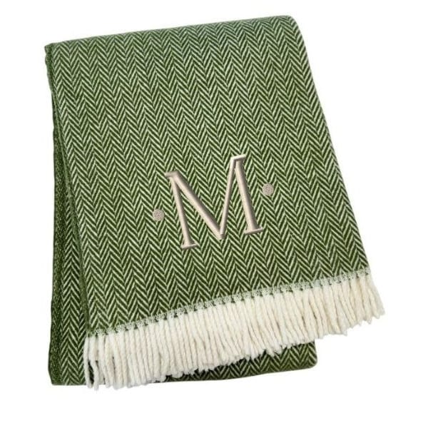 This 55-inch x 70-inch moss green and white herringbone cotton blend "M" initial throw blanket with tassels and embroidery is the perfect accent you've been searching for. Features a woven herringbone design that offers sumptuous softness and texture that you'll cherish for years to come. Made from cotton blend this blanket will make a great addition to any room it's added to. Versatile to decorate with your first or last name, this embroidered monogram initial blanket will add some personalized style to your space or be a great gift. This cozy throw blanket makes the perfect add-on to movie nights and lazy afternoons. 70.00-inch h x 55.00-inch w x 0.50-inch d.