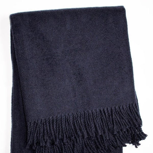 This 55-inch x 70-inch navy blue cotton blend woven plush throw blanket with fringe is a stylish addition to any sofa. This ultra-soft plush blanket is designed for ultimate comfort. Made from a cozy blend of cotton and acrylic, this solid color blanket will make a great gift or addition to any room it's added to. Add extra texture to your decor and turn your room into an inviting space. This cozy throw blanket is sure to become your go-to couch companion. 70.00-inch h x 55.00-inch w x 0.30-inch d.