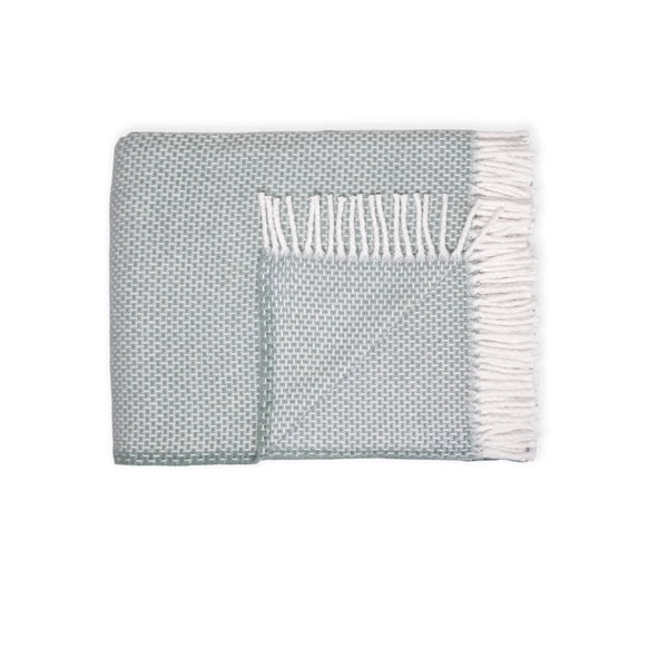 Whether you're curling up for movie night or you need an extra layer of warmth as you drift off to sleep, this 55-inch x 70-inch sage and ivory cotton woven plush throw blanket is the perfect solution. This luxurious throw features a small geometric pattern and is crafted from a mix of cotton and acrylic that is cozy, soft beyond belief, and oh-so-giftable. This woven throw with fringe is something you'll cherish for years to come. 70.00-inch h x 55.00-inch w x 0.50-inch d.