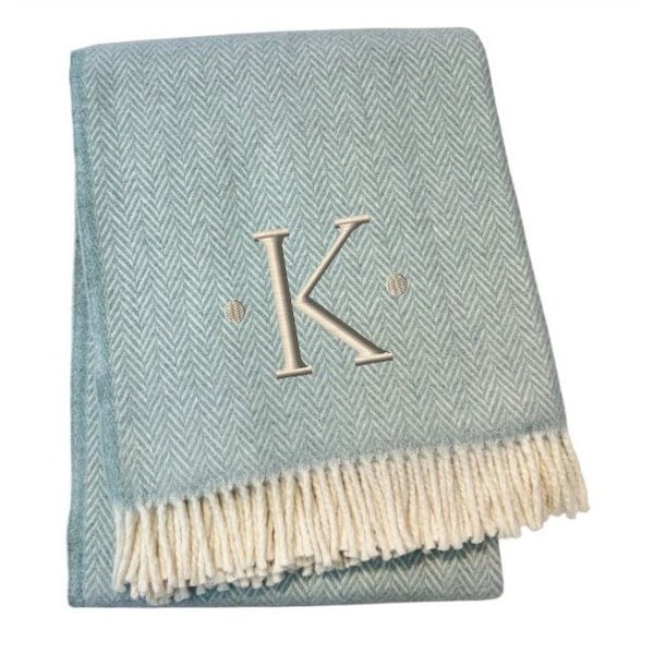 This 55-inch x 70-inch sky blue and white herringbone cotton blend "K" initial throw blanket with tassels and embroidery is a stylish addition to any sofa. Features a woven herringbone design that offers sumptuous softness and texture that you'll cherish for years to come. Made from cotton blend this blanket will make a great addition to any room it's added to. Versatile to decorate with your first or last name, this embroidered monogram initial blanket will add some personalized style to your space or be a great gift. Perfect for your favorite chair, bed or lounging on the couch, this blanket helps bring a warm and fashionable flair to your space. 70.00-inch h x 55.00-inch w x 0.50-inch d.