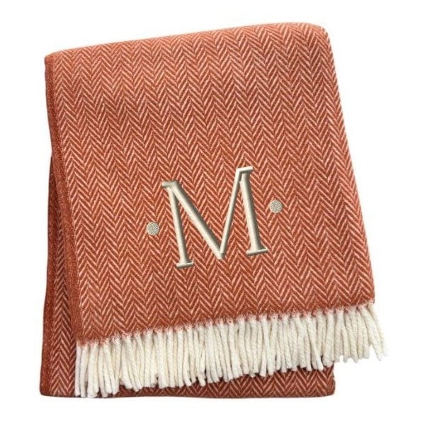 This 55-inch x 70-inch terra cotta and white herringbone cotton blend "M" initial throw blanket with tassels and embroidery is the best (and most stylish) way to wrap you and your loved ones in the epitome of cozy all year long. Features a woven herringbone design that offers sumptuous softness and texture that you'll cherish for years to come. Made from cotton blend this blanket will make a great addition to any room it's added to. Versatile to decorate with your first or last name, this embroidered monogram initial blanket will add some personalized style to your space or be a great gift. This cozy throw blanket makes the perfect add-on to movie nights and lazy afternoons. 70.00-inch h x 55.00-inch w x 0.50-inch d.