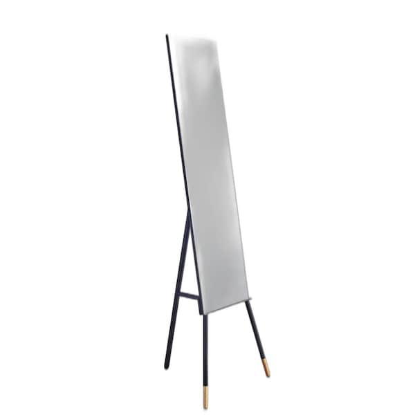 Introducing our stunning black rectangle cheval standing metal mirror. This freestanding mirror is supported by a sturdy base, offering a full-length view that can be conveniently angled to suit your needs. Its sleek and contemporary design is complemented by a matte-finished metal frame, adding a touch of elegance to any space. With its vertical orientation and flat surface shape, this mirror is both functional and stylish. Whether you're getting ready for the day or adding a decorative accent to your home, this black metal mirror is the perfect choice. 56.75-inch H x 17-inch W x 17-inch D