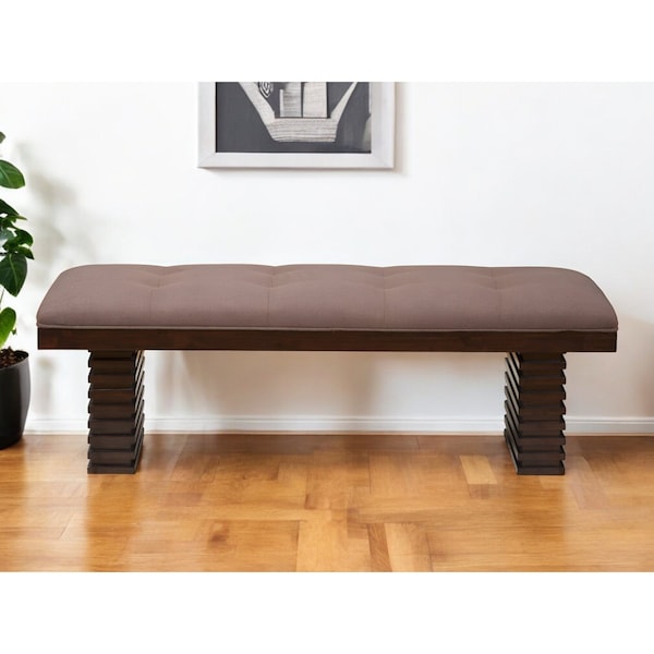 59" Latte and Espresso Linen Blend Upholstered Dining Bench