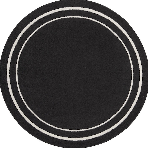 Set an inviting tone in your space with this 6-foot black and ivory round indoor outdoor area rug. This geometric round shaped rug features a solid color that combines hue and shape for a great look. Solid colors are versatile and will blend with any existing decor style. Versatile in use, durable, and easy to maintain, this rug is an ideal solution to add a decorative and inviting touch to your indoor or outdoor space. 72-inch h x 72-inch w x 0.25-inch d.