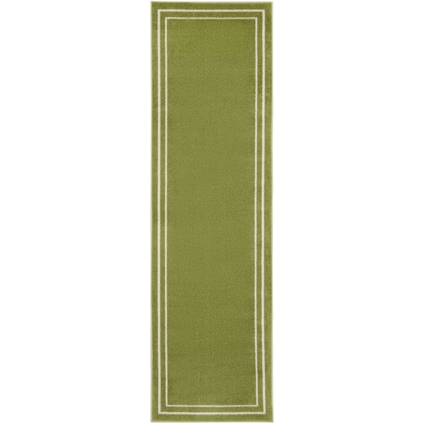 Set an inviting tone in your space with this 6-foot green and ivory indoor outdoor runner rug. This runner shaped rug flaunts a green and ivory color that will be a great way to accent your space. Solid colors are versatile and will blend with any existing decor style. Makes a great way to dress up your patio, porch, or poolside, but also works well as a durable and easy to maintain option in the kitchen, family room, or mudroom. 24-inch h x 72-inch w x 0.25-inch d.