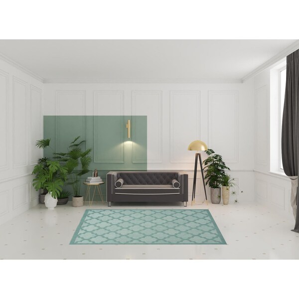 Add great coloration and comfortable texture to your space with this 6' x 9' aqua geometric flatweave area rug. This rectangle shaped rug features a geometric design in aqua to give it visual interest. A classic shape marries with good looking design for your space This superior Turkish rug represents the highest quality and is built to last. Area Rugs help to give warmth and sense of home to your space. .25" H x 72.00" W x 108.00" D
