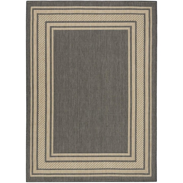 Set an inviting tone in your space with this 6-foot x 9-foot charcoal geometric indoor outdoor area rug. This rectangle shaped rug features a geometric design that will work well both indoors or out. A classic shape marries with good looking design for your living room, hall, bedroom, porch, patio, or poolside. Versatile in use, durable, and easy to maintain, this rug is an ideal solution to add a decorative and inviting touch to your indoor or outdoor space. 72-inch h x 108-inch w x 0.24-inch d.
