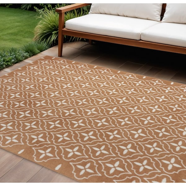 6' X 9' Copper Geometric Indoor Outdoor Area Rug