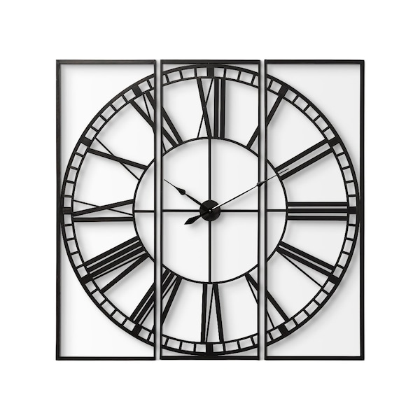 Stay on track with this modern industrial 60" Round and Square Industrial Style Wall Clock. The eye-catching makeup of this clock will ensure that you never run late again. Crafted from sturdy metal, this farmhouse-style wall clock features an abstract and geometric circle and square design. The jumbo size will make this a stunning centerpiece and focal point of your room. 60-inch H x 60-inch W x 2-inch D