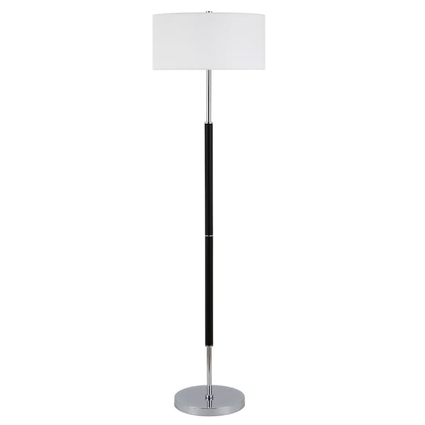 This 61-inch black two light floor lamp with white frosted glass drum shade is the perfect combination of design and function mixed with basic good looks. A gorgeous black metal base bring just the right amount of pizzazz to this fabulous lamp. The lamp shade has a drum shape and is made from fabric. Classically styled, this traditional lamp features a straight pole that extends upwards from a single base. High quality design makes this a great lamp for not only lighting, but accenting a room with style. It is perfect for virtually any decor. 61-inch H x 17-inch W x 17-inch D