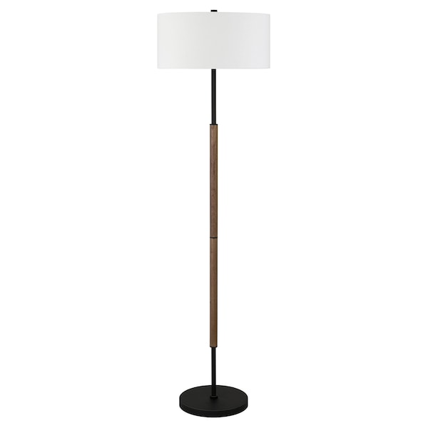 Add a bright anchor to your room with this 61-inch black two light floor lamp with white frosted glass drum shade. A gorgeous black metal base bring just the right amount of pizzazz to this fabulous lamp. The lamp shade itself has a drum shape and is made of fabric, which makes it a perfect choice. Classically styled, this traditional lamp features a straight pole that extends upwards from a single base. The light that this lamp throws is soft and warm to elevate the look of most any space in your home. Bring some lite and good vibes into your space with this updated and stylishly designed lamp. 61-inch H x 17-inch W x 17-inch D