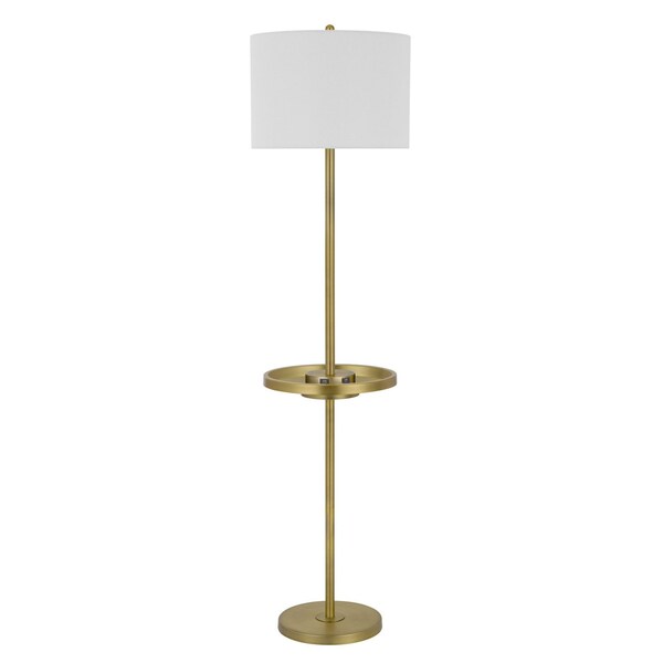 Add a bright anchor to your room with this 62" brass tray table floor lamp with white square shade. The lamp is made of sturdy metal and features a brass color. The brass base coloring infuses a warm and rich tone to your space. The lamp light itself is covered by a fabric, square shaped shade, making this a classy piece that will complement most any interior. A fresh and updated take on two classics, this tray table floor lamp offers lots of functionality in a compact footprint. Offering you a combination of lamp and end table together in one, this mighty accent is just what you need beside your sofa, favorite chair, desk, or bed. The light that this lamp throws is soft and warm to elevate the look of most any space in your home. The perfect lamp to create just the right natural and soothing light in your space. 62" H x 16" W x 16" D