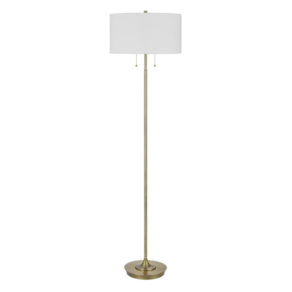 Bring of level of elegance and charm to your space with this good looking 64" brass two light traditional shaped floor lamp with white rectangular shade. The base of this lamp is made of metal finished in a brass tone. The brass base coloring infuses a warm and rich tone to your space. The coloration of the brass lamp base creates a fashionable marriage with the the white fabric rectangular shaped shade. Classically styled, this traditional lamp features a straight pole that extends upwards from a single base. Use this lamp anywhere and elevate the look of the whole space. Bring some lite and good vibes into your space with this updated and stylishly designed lamp. 64" H x 17" W x 17" D