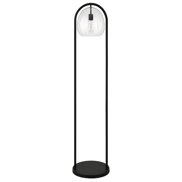 Embrace the good life with this hard working and stylish 65" black column floor lamp with clear seeded glass globe shade. The base of this lamp is made of black metal. The lamp light itself is covered by a glass, globe shaped shade, making this a classy piece that will complement most any interior. Unique and impactful, this column or tower shaped lamp is tall and rectangular emitting warm beautiful light. High quality design makes this a great lamp for not only lighting, but accenting a room with style. It is perfect for virtually any decor. 64.5" H x 14" W x 14" D