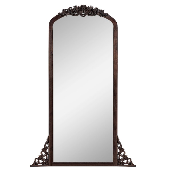 An antiqued and distressed mirror finish gives this rectangle mirror with a classic brown wooden frame lots of vintage charm. Wall mounted and vertical in orientation, this standing mirror measuring 27.51 inches in width adds a touch of casual style to any room. The antique mirror finish and brown frame material enhance its timeless appeal, making it a perfect addition for those who appreciate a classic design aesthetic. 66.81-inch H x 27.51-inch W x 1.57-inch D
