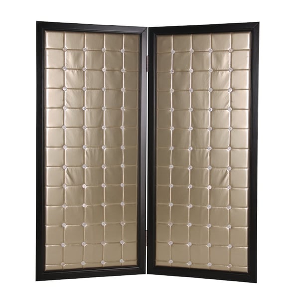 67" Gold Fabric Folding Two Panel Screen Room Divider