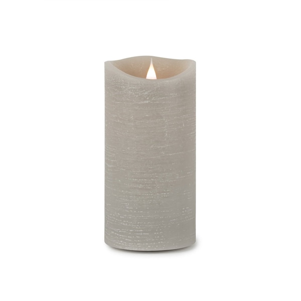 Experience the magic of candlelight, with this 7-inch gray flameless designer candle. This designer candle can serve as a unique statement piece in your home decor. The flickering feature is designed to create an authentic candlelight experience. This candle includes a remote control so you can be in charge of the various settings and features. Let the warm glow of candlelight create an intimate and welcoming ambiance for your guests or a soothing atmosphere for yourself. 7-inch H x 3.5-inch W x 3.5-inch D