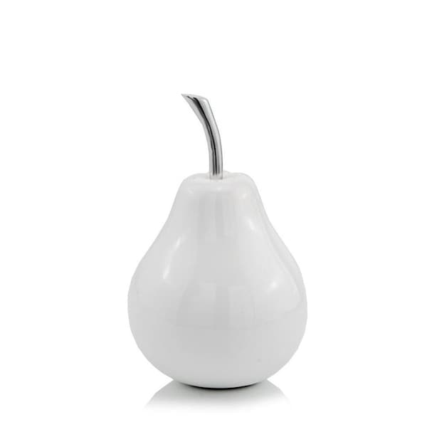 7" White Aluminum Decorative Pear Tabletop Sculpture