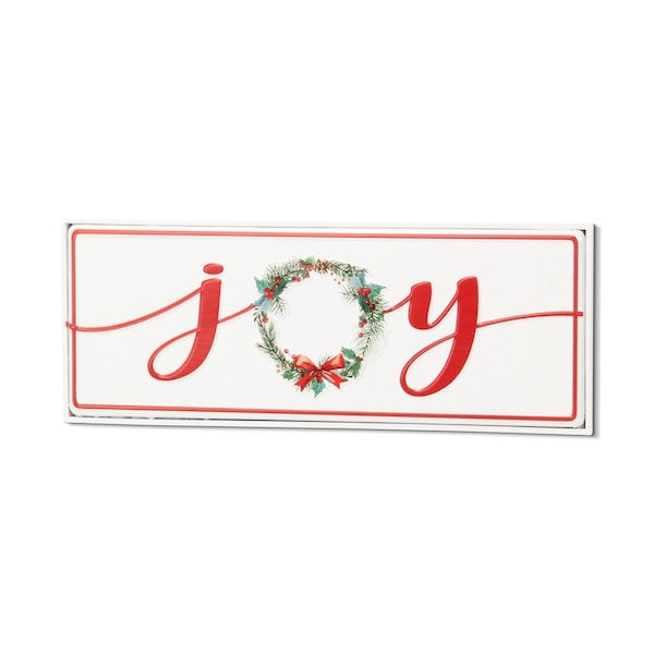 7" X 19" White and Red Christmas Joy Metal Wall Decor