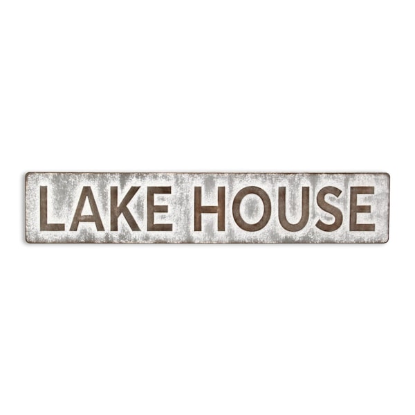 Handmade with care, this lake house sign brings some rustic charm and authenticity to your space. With materials and a finish that is purposefully distressed, this hanging wall decor will instantly liven things up and bring color and dimension to your walls. The rectangular design adds a modern touch while the galvanized metal construction ensures durability. Featuring rustic style elements, this piece enhances any interior, making it a perfect addition to your home decor collection. Enjoy its unique charm that resonates with character. 7.25-inch h x 36.25-inch w x 1.00-inch d.