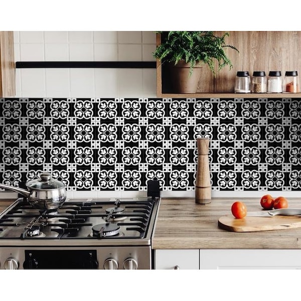 7 x 7 in. Black & White Stark Peel & Stick Removable Tiles