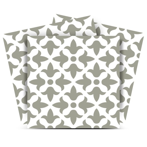 7" X 7" Sage Gray Fleur Removable Peel and Stick Tiles