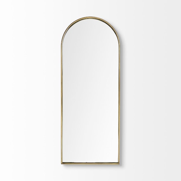 Beautify your space with an ornament that's original and unique at the same time with this 70-inch gold arch metal framed accent mirror. The frame of this mirror is made from metal and has an elegant gold color to it. Inside the frame there is a arch shaped mirror which will open up any space you hang this piece in. This mirror makes any room glow with its fantastic frame. Its industrial style making this the perfect versatile accent piece for most any decor. Due to its high quality construction, it will last a lifetime. This mirror can fit perfectly in any space and give that space a distinctive look. 70-inch H x 28-inch W x 2-inch D
