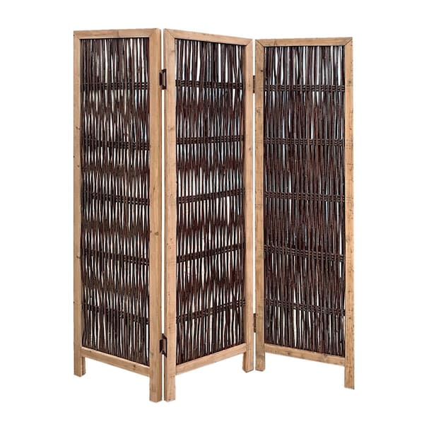 71" Brown Solid Wood Folding Three Panel Screen Room Divider