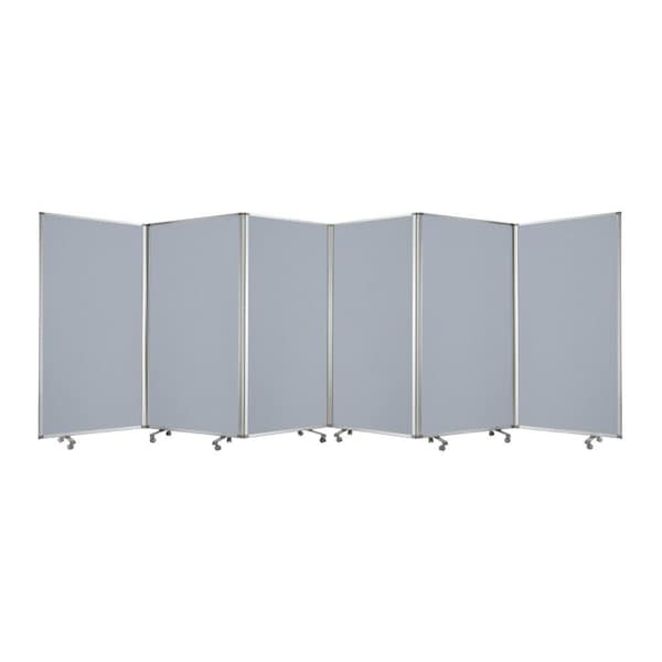 The 71-inch gray iron folding six panel screen room divider offers a stylish solution to partition your space. Crafted with a sturdy metal frame, it ensures durability while enhancing your decor. The six-panel design provides versatility, allowing you to arrange and adjust it according to your needs. Made from high-quality iron, this screen boasts both strength and a modern aesthetic, perfect for contemporary interiors. Its folding feature allows for easy storage and setup, making it a practical choice for any room. Whether you're looking to create a cozy nook or simply add an artistic touch, this room divider will meet your requirements seamlessly. Elevate your living area with this functional and chic addition. 71.00-inch h x 212.00-inch w x 1.00-inch d.