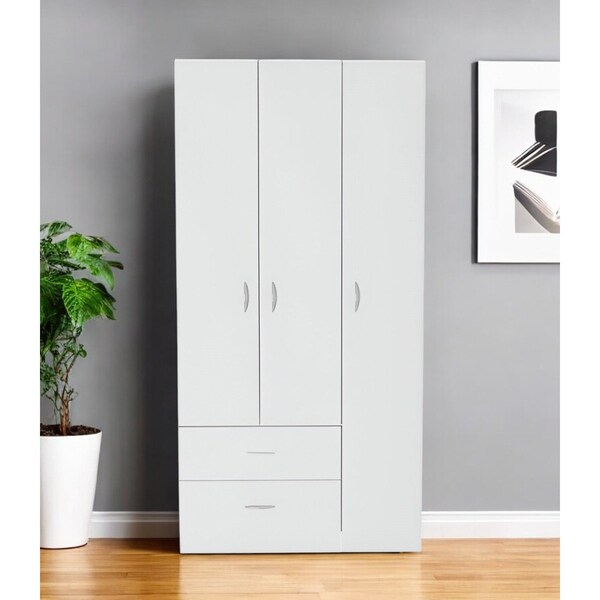 This 71-inch white three door two drawer combo dresser is a practical and good looking accent for your bedroom storage and organizational needs. Versatile in use, this combo dresser is equipped with both drawers and doors for all your storage needs. Its a high quality piece, made from high grade manufactured_wood. The white coloration of this piece is neutral and will blend easily with most any decor. 70.8-inch h x 35.4-inch w x 18.5-inch d.