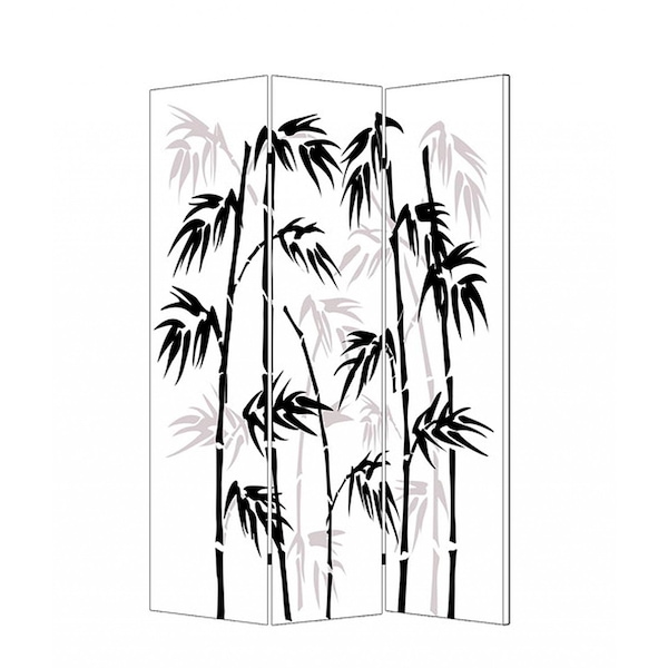 The 72-inch black and white canvas folding three panel screen room divider is a stylish and functional addition to any space. This elegant room divider features a sturdy wood frame that ensures durability while maintaining a sleek design. Made from high-quality canvas, the panels provide a beautiful backdrop that enhances your interior aesthetics. With three panels, this versatile folding screen allows you to easily create separate areas in your home, offering privacy and definition to open spaces. Ideal for use in living rooms, bedrooms, or offices, this room divider can adapt to your needs while adding a modern touch. Its striking black and white design makes it a perfect complement to various decor styles, enhancing your living environment effortlessly. 72.00-inch h x 48.00-inch w x 1.00-inch d.