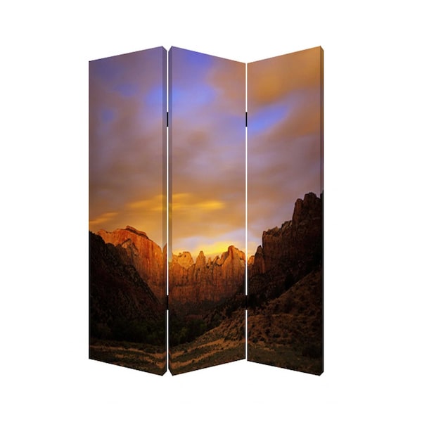 The 72-inch brown canvas folding three panel screen room divider brings style and functionality to your living space. Designed as a folding structure, it allows for easy adjustment and mobility in any room. The sturdy wood frame provides durability while adding an elegant touch to your decor. Crafted with high-quality canvas, the screen offers a soft yet striking visual appeal, perfect for defining areas or creating privacy. With three panels, this room divider can effortlessly transform an open space into a cozy retreat. Its versatile design makes it suitable for various settings, whether in a home office, living room, or bedroom. Enhance your interior while enjoying the practicality of this beautiful room divider. 72.00-inch h x 48.00-inch w x 1.00-inch d.