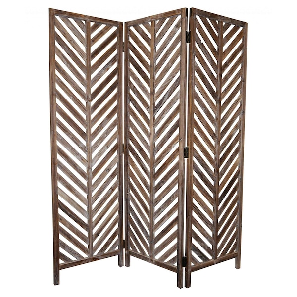 The 72-inch brown wood folding three panel screen room divider offers a stylish solution for defining spaces within your home. Crafted from high-quality wood, this divider brings warmth and a natural aesthetic to any room. Its three folding panels provide flexibility, allowing you to adjust the configuration to suit your needs. Ideal for creating privacy in open spaces or adding an element of design, this room divider is both functional and visually appealing. With its rich brown finish, it seamlessly blends with various decor styles, enhancing the overall ambiance of your living area. Perfect for bedrooms, living rooms, or offices, this versatile piece transforms how you organize and utilize your space while maintaining elegance. 72.00-inch h x 63.00-inch w x 1.00-inch d.