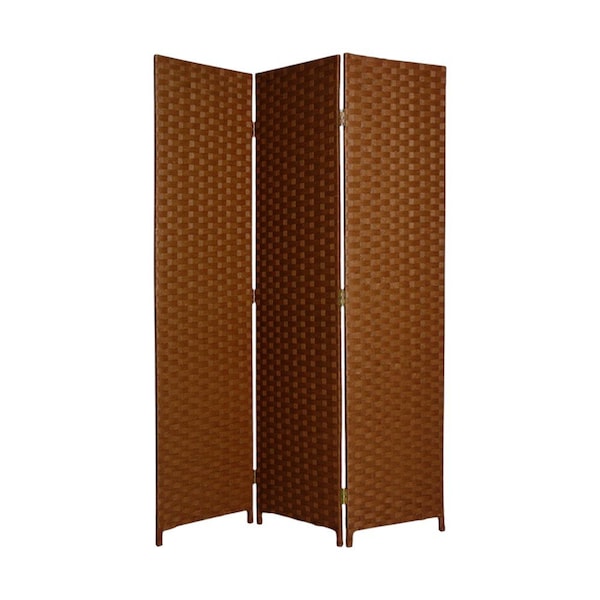 The 72-inch dark brown folding three panel screen room divider offers a stylish solution for creating privacy in any space. Crafted from durable wood, this room divider adds a touch of elegance while ensuring sturdiness. Its three-panel design allows for versatile configurations, making it easy to adapt to your specific needs. The rich dark brown finish complements various decor styles, enhancing the overall aesthetic of your room. This folding feature makes it convenient to store when not in use, providing flexibility in your living area. Transform open spaces into cozy nooks with this functional and chic room divider that strikes the perfect balance between style and practicality. 72.00-inch h x 54.00-inch w x 1.00-inch d.