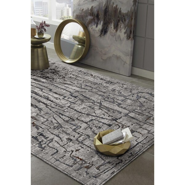 79 x 114 in. Grey Polyester Rug