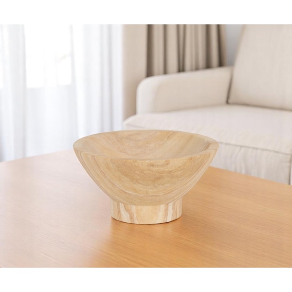 The 8-inch beige sandstone round pedestal centerpiece bowl is a stunning addition to your space that adds a modern vibe. Features a neutral color, clean and modern shape, and a pedestal base that adds a touch of refinement and sophistication. Not for intended for direct food contact, this bowl is for decorative display use or as a stand-alone décor piece. The size makes it great catch all for jewelry, keys, coins, and more. 4-inch h x 8.07-inch w x 8.07-inch d.