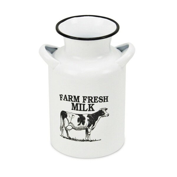 Elevate your decor with the 8-inch black and white metal jug vase, a hand-painted masterpiece that exudes transitional style effortlessly. Crafted from metal, this stunning vase combines the classic colors of black and white in a unique design that will complement any room. The jug vase type adds a touch of elegance to your floral arrangements, making it a perfect centerpiece for your living space. With meticulous attention to detail, this vase is a true work of art that adds sophistication and charm to your home. Let your creativity shine by displaying fresh or artificial flowers in this exquisite jug vase, creating a striking focal point for any tabletop or shelf. 8-inch h x 4.75-inch w x 4.75-inch d.