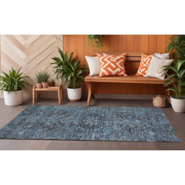 Set an inviting tone in your space with this 8-foot black oriental washable indoor outdoor runner rug. This runner shaped rug features a oriental design that will work well both indoors or out. A classic shape marries with good looking design for your living room, hall, bedroom, porch, patio, or poolside. Ideal for outdoor spaces or high traffic areas with kids and pets, this rug is made from heavy duty polyester that is stain resistant to help repel water, dirt, and stains. Makes a great way to dress up your patio, porch, or poolside, but also works well as a durable and easy to maintain option in the kitchen, family room, or mudroom. 27-inch h x 90-inch w x 0.19-inch d.