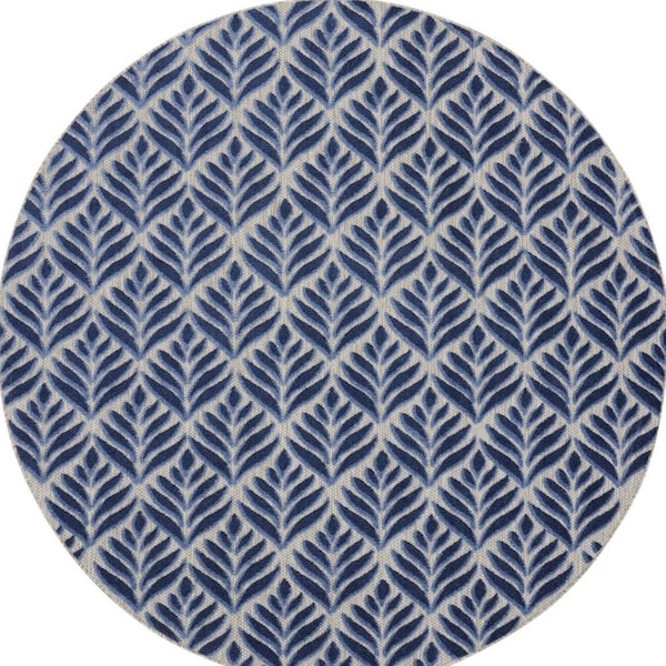 8' Blue Round Floral Indoor Outdoor Area Rug