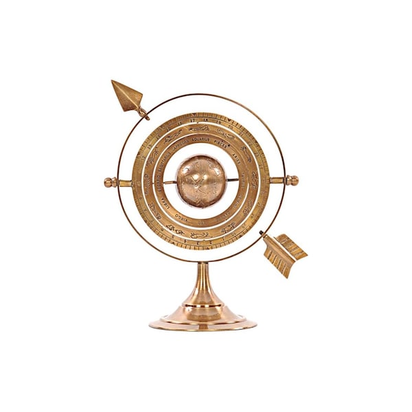 The 8-inch bronze metal armillary sphere tabletop sculpture is the perfect decorative accessory for your home. This bronze hued piece represents high quality, expertly made from high grade metal with spinning pieces, including the globe. The celestial sculpture is great to use on its own or mix with other decorations for the perfect look. 8-inch h x 3-inch w x 6-inch d.