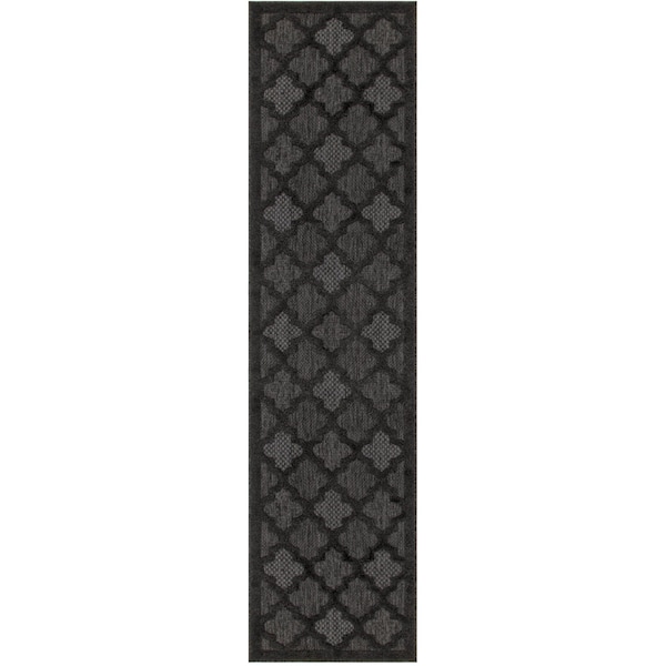 8' Charcoal And Black Trellis Indoor Outdoor Runner Rug